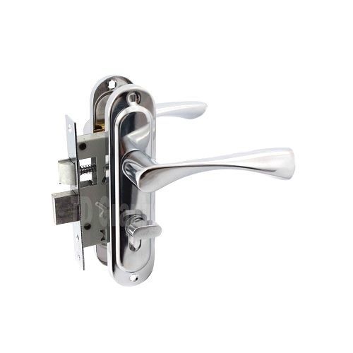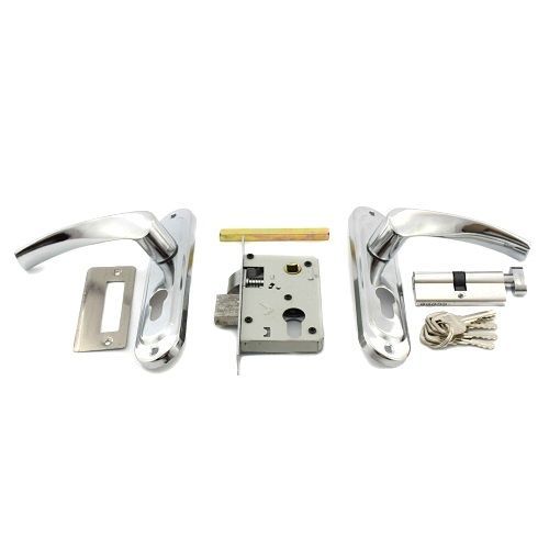 Замок врезной с ручками. Предназначен для установки в деревянные двери толщиной до 50 мм, правого и левого открывания. Дверь может быть закрыта на защелку и открыта с помощью фалевой ручки при открытом засове замка. Прямоугольный ригель, вылет 16 мм. Универсальная защелка. Межосевое расстояние 50 мм. Удаление ключевого отверстия 40 мм. Гальваническое покрытие ручек, материал алюминий. Механизм секрета с мини высотой профиля, длина ц/м 68 мм.