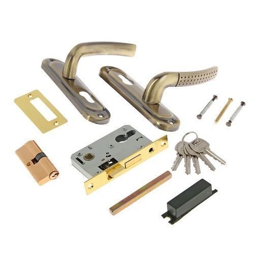 Замок врезной с ручками. Предназначен для установки в деревянные двери толщиной до 40мм, правого и левого открывания. Дверь может быть закрыта на защелку и открыта с помощью фалевой ручки при открытом засове замка. Прямоугольный ригель, вылет 16мм. Универсальная защелка. Стальной корпус, покрытие эмаль. Межосевое расстояние 50мм. Удаление ключевого отверстия 40мм. Гальваническое покрытие ручек, материал алюминий. Механизм секрета с нестандартной (минги) высотой профиля, длина ц/м 68 мм, ключ-ключ, 5 ключей,цвет цилиндра - латунь.