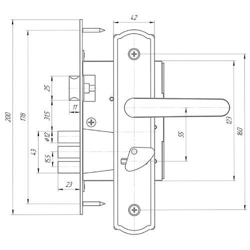 | Удаление ключевого отверстия (Backset) | 55 мм |