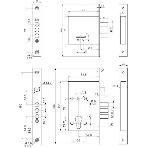 Комплект врезных Border (Бордер) замков BORDER Standart с ригелем 12 мм (ЗВ8-8У, ЗВ4-3/55), 3 кл. /76314+78931/ - Комплект из двух врезных универсальных замков ЗВ 8-8 У и ЗВ 4-3/55 с разными механизмами секретности, верхний сувальдный, нижний цилиндровый. Идеальное решение для производителей дверей. Хорошие защитные свойства и доступная цена.