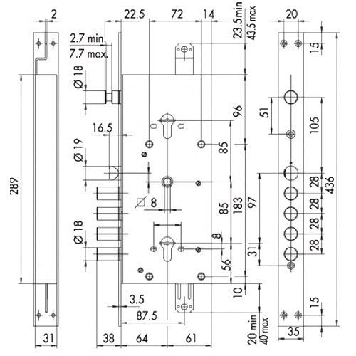 Cisa (Италия) - один из флагманов мирового производства замков и синоним качества и надёжности. Корпус врезного замка CISA 56.786.48 двухцилиндрового, изготовлен из высокопрочной оцинкованной стали. Верхний цилиндровый замок является дополнительним и закрывается на два оборота ключа, нижний на четыре оборота. Имеется реверсивная защелка из никелированной стали и отверстия под стяжные винты, съемная лицевая планка, 5 ригелей диаметром 18 мм (вылет ригеля 38 мм). Рекомендуется устанавливать цилиндровые механизмы разных серий, это повысит эффективность защиты вашего дома от недоброжелателей. Гарантия 2 года.