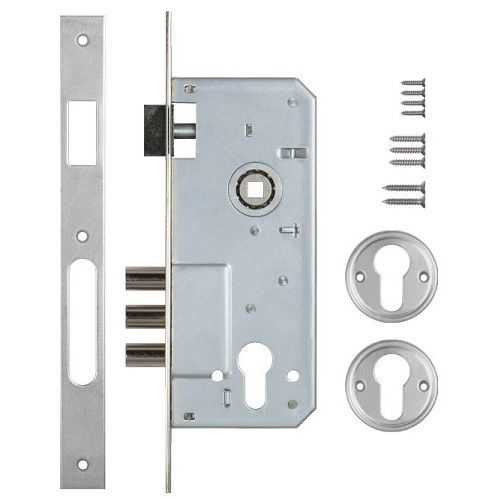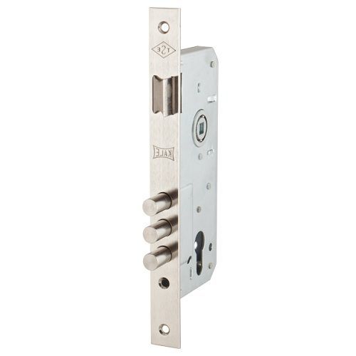 Корпус замок врезной с подшипником 3 ригеля, 1 защёлка. Межосевое расстояние 85 мм. Расстояние от планки до центра цилиндра 45мм. Лицевая пластина шириной 22мм.