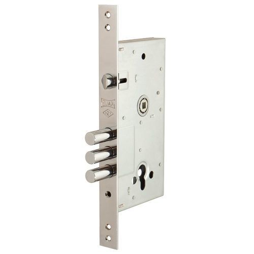 Корпус замка врезного цилиндрового Kale 252/R w/b для металлических дверей с верхней реверсивной защелкой, оснащен подшипником под ручку для плавного хода. Цвет лицевой планки - никель. Бэксет: 60 мм. Рекомендуется устанавливать на дверь в паре с сувальдным замком.