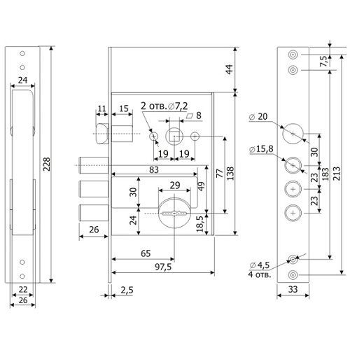 ЗВ 5011 - Замок врезной сувальдный под ручку. Реверсивная защелка, переворот защелки осуществляется без разбора замка. Замок серии Strong Security, 4 класс безопасности. Повышенная защита от наиболее распространенных методов вскрытия: защита от самоимпрессии – втулка на корпусе и крышке замка; защита от вскрытия отмычкой – ложные пазы на стойке и сувальдах, увеличенная жесткость пружин сувальд; защита от «свертыша» – ослабленный зуб рейки хвостовика; защита от взлома – при полностью выдвинутых ригелях замка, 30% их длины остается в корпусе замка, усилена конструкция засовов; защита от высверливания – внешняя бронепластина, закаленная стойка рейки хвостовика; защита от вандалов – отсутствует нижняя стенка корпуса замка. Предназначен для установки в металлические двери, шкафы и сейфы. Длина ключа 43,5 мм.