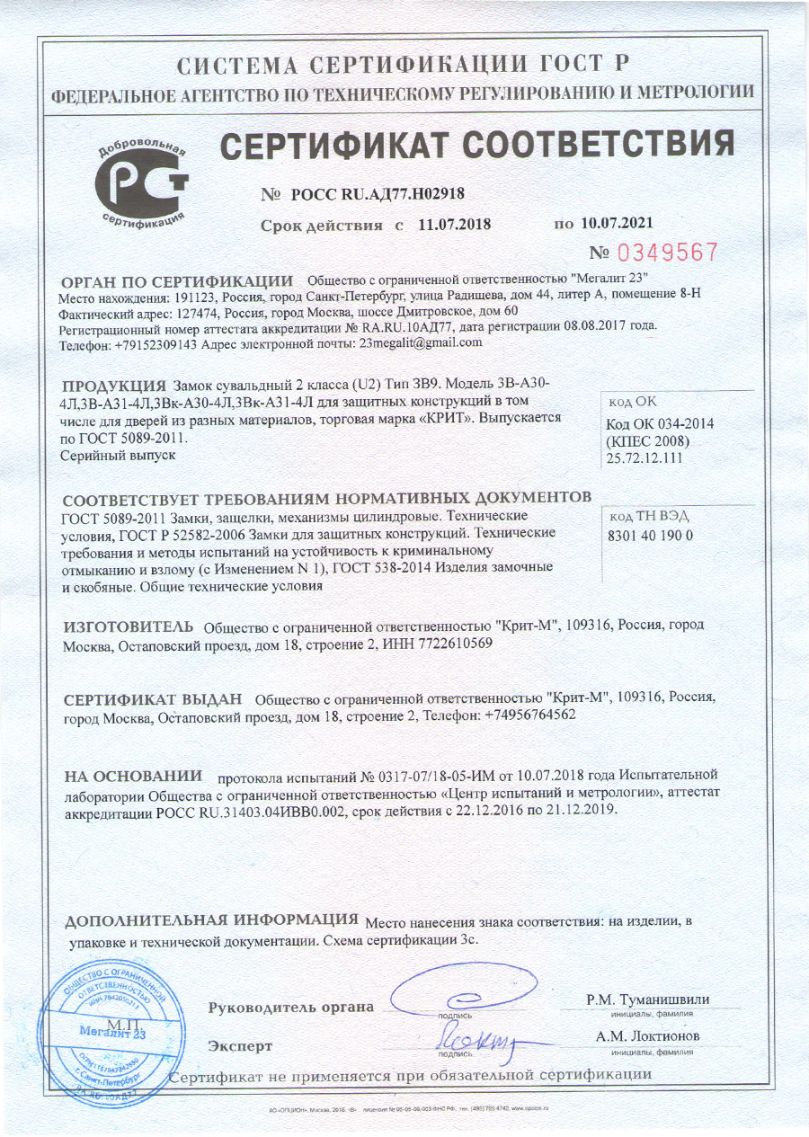 Замок врезной КРИТ-М ЗВ-72/55