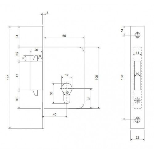 Дверной замок Апекс, модель 94-H/60 имеет плоский ригель с встроенными зацепами. В комплекте есть все необходимое для установки замка. Удаление ключевого отверстия (Backset) 40 мм.