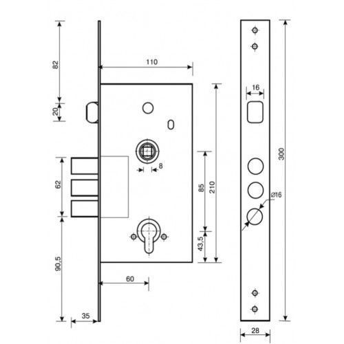 | Удаление ключевого отверстия (Backset) | 60 мм |