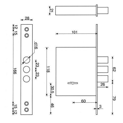 | Тип крепления врезного замка | Лицевая планка |
