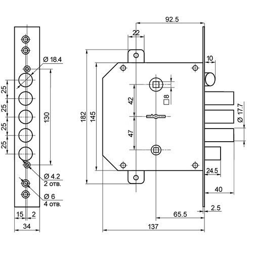 Замок врезной Border (Бордер) сувальдный с задвижкой и защёлкой ЗВ9-6 ЛКТЗ с тягами (лев.), 5 кл. /77405/ с защелкой, задвижкой и тягами. Это надежный 6-сувальдный замок самого высокого 4 класса с функцией ночника (задвижка) по доступной цене. Подходит для установки в гаражные ворота, калитки, а также металлические двери с левым открыванием.
