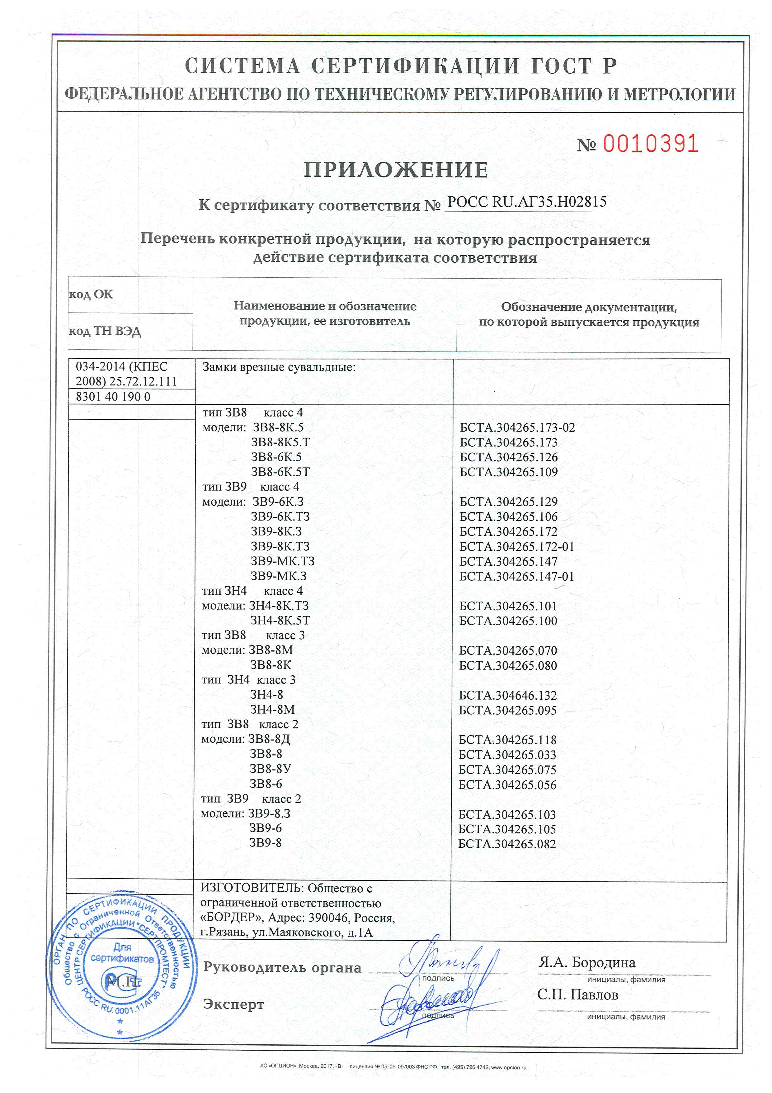 Сертификат соответствия 2,3,4 классу. Замки Border.jpg