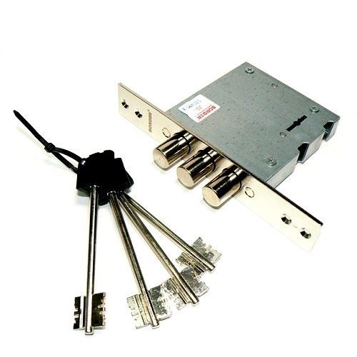 Замок врезной 8-сувальдный 4-го класса, предназначен для установки в металлические и деревянные двери толщиной 40-50 мм. Универсальный, может устанавливаться на правые и левые двери. Удаление ключевого отверстия 65 мм. Замок закрывается на два оборота, выход засова - 21 мм. Размер корпуса 97,5х90 мм, планки 180х30 мм. Покрытие лицевой планки - никель. В комплекте 4 ключа длиной 112 мм.