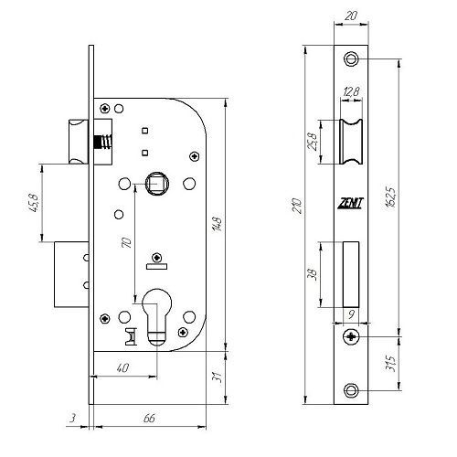 Корпус замка ЗВ7-70 предназначен для установки в легкие двери. Межосевое расстояние 70 мм, бэксет 40 мм. Усиленная конструкция защелки повышает ее надежность. Корпус выполнен из стали.