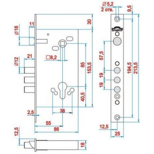 | Удаление ключевого отверстия (Backset) | 55 мм |