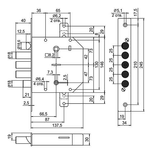 | Удаление ключевого отверстия (Backset) | 66.5 мм |