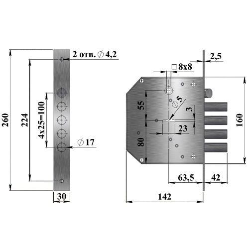 | Удаление ключевого отверстия (Backset) | 63.5 мм |