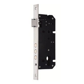 Замок врезной FERRE 945-11B-3R CP с тремя ригелями. Подходит для установки на деревянные входные и межкомнатные двери. Универсальная защелка, для левых и правых дверей. Вылет ригеля: 20 мм. Межосевое расстояние: 85 мм. Бэксет: 45 мм. Ширина лицевой планки: 23 мм. В комплектацию входят: ответная планка, винт для евроцилиндра 70 мм. Цвет: хром.