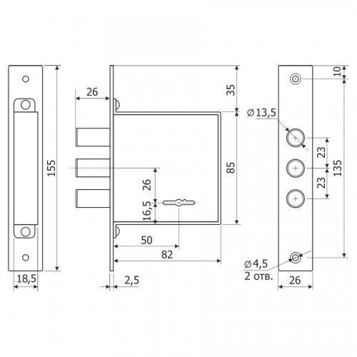 Замок Guardian (Гардиан) врезной сувальдный ЗВ 10.01 (без ответной планки) - 2 класс безопасности. Защита от наиболее распространенных методов вскрытия: защита от вскрытия отмычкой - ложные пазы на стойке и сувальдах, увеличенная жесткость пружин сувальд; защита от "свертыша" - ослабленный зуб рейки хвостовика. Замок предназначен для установки в металлические и деревянные двери, шкафы и сейфы. Оптимально устанавливать в паре с замком Гардиан 12.11. В комплекте 4 ключа.