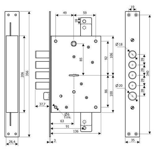 | Удаление ключевого отверстия (Backset) | 63.5 мм |