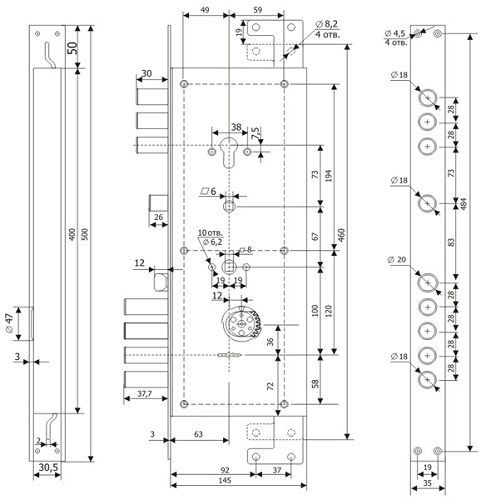 Замок врезной Guardian (Гардиан) двухсистемный ЗВ 25.14 Т (прав) с тягами (без накл), 5+1 кл (длин. кл. 54мм) /123:454/ комбинированный, с двумя механизмами секретности, с кодовым ротором, с защелкой и задвижкой предназначен для установки в металлические двери. Подходит для дверей правого открывания. Повышенная защита от наиболее распространенных методов вскрытия: отмычки - ложные пазы на дисках кодового ротора и сувальдах, увеличенная жесткость пружин сувальд; "свертыша" - ослабленный зуб рейки хвостовика; высверливания - внутренняя бронепластина; взлома - усиленная конструкция засовов. Может устанавливаться с вертикальным приводом для запирания двери на три стороны. В комплектацию входят монтажный кодовый ротор с монтажным ключом, основной кодовый ротор с 5 длинными ключами, ответная планка. Встроенная бронепластина в корпусе замка надежно защищает от высверливания. В случае потери ключа, смена секрета осуществляется путем замены кодового ротора, без демонтажа замка из двери. Возможна самостоятельная замена, без вызова специалиста. Дополнительная опция - наружная бронепластина. Секретность (количество комбинаций сувальдных замков) - более 9,7 млн.
