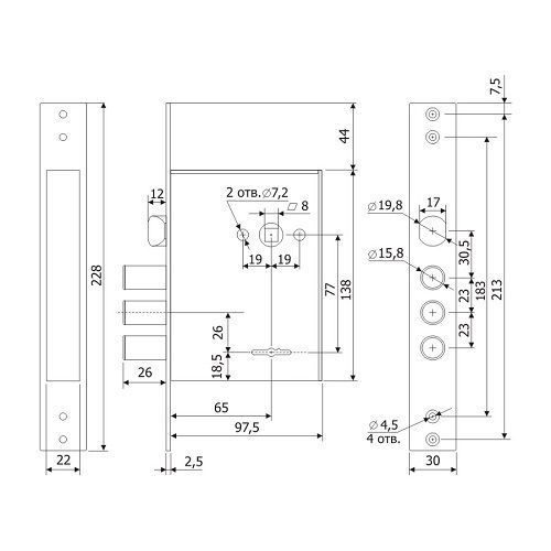 ЗВ 3011 - Замок врезной сувальдный под ручку. Реверсивная защелка, переворот защелки осуществляется без разбора замка. 2-ой класс безопасности. Защита от наиболее распространенных методов вскрытия: защита от вскрытия отмычкой – ложные пазы на стойке и сувальдах, увеличенная жесткость пружин сувальд; защита от вандалов – отсутствует нижняя стенка корпуса замка; защита от «свертыша» – ослабленный зуб рейки хвостовика; защита от взлома – при полностью выдвинутых ригелях замка, 30% их длины остается в корпусе замка, усилена конструкция засовов; защита от высверливания – закаленная стойка рейки хвостовика засова. Замок предназначен для установки в металлические двери.