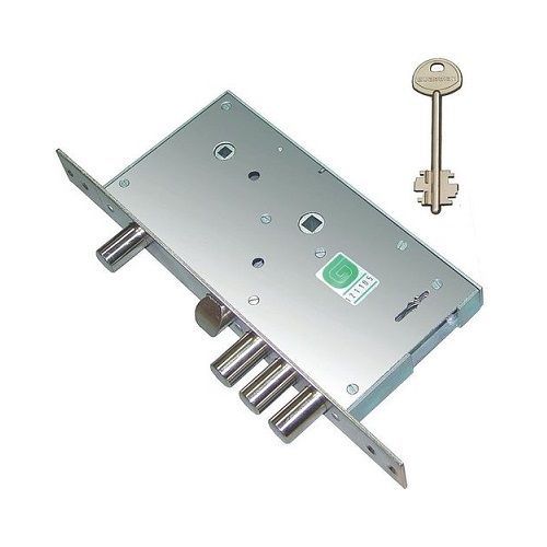 Замок врезной Guardian (Гардиан) сувальдный с задвижкой и защёлкой ЗВ 30.15, 4 кл. /123:455/ - Замок врезной сувальдный под ручку, с задвижкой. Реверсивная защелка, переворот защелки осуществляется без разбора замка. 2-ой класс безопасности. Защита от наиболее распространенных методов вскрытия: защита от вскрытия отмычкой – ложные пазы на стойке и сувальдах, увеличенная жесткость пружин сувальд; защита от вандалов – отсутствует нижняя стенка корпуса замка; защита от «свертыша» – ослабленный зуб рейки хвостовика; защита от взлома – при полностью выдвинутых ригелях замка, 30% их длины остается в корпусе замка, усилена конструкция засовов; защита от высверливания – закаленная стойка рейки хвостовика засова. Замок предназначен для установки в металлические двери.
