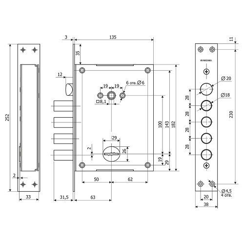 | Тип замка | врезной |