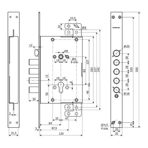 Замок врезной Gardian (Гардиан) ЗВ 7216 Т (5 кл.) /128:4140/ предназначен для установки в бронированные металлические двери и двери усиленной конструкции. Замок универсальный, подходит для дверей правого и левого открывания. Габаритно-присоединительные размеры итальянского замка. Переворот защелки осуществляется без разборки замка. Редукторный механизм замка обеспечивает бесшумность и плавность работы замка в двери, легкость вращения ключа без проскоков при закрытии/открытии замка. Уникальная защита замка: блокировка механизма замка при вырывании цилиндрового механизма. Крепление цилиндрового механизма осуществляется с торца двери. Функция работы защелки от ключа. Функция отключения защелки от дверной ручки в закрытом положении замка. Вертикальный привод - возможность запирания двери на три стороны. Отверстия для крепления врезной броненакладки на цилиндровый механизм. Отверстия для крепления дверных ручек стяжными винтами. Замок с торцевой планкой. Рекомендована комплектация цилиндром 4-го класса. Гарантия 5 лет.