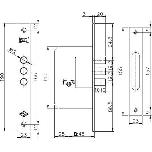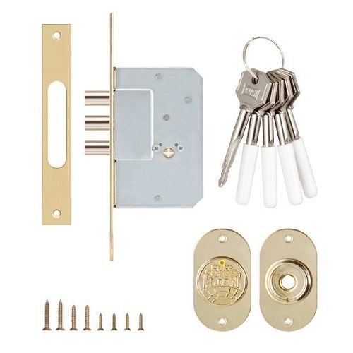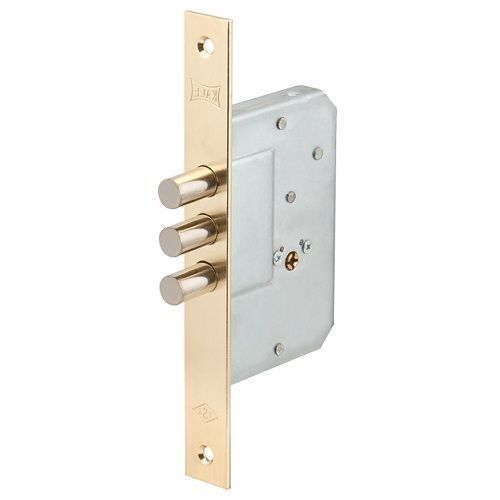 Врезной замок 3 ригеля с крестовым (5 пинов) цилиндровым механизмом. Расстояние от планки до центра цилиндра 45мм. 5 ключей.