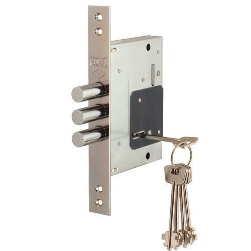 Замок врезной сувальдный Kale 257/L для металлических дверей, дополнительный, цвет лицевой планки-никель. Замок имеет 3-й уровень безопасности, в комплекте 5 ключей. Размер бэксет: 60 мм.
