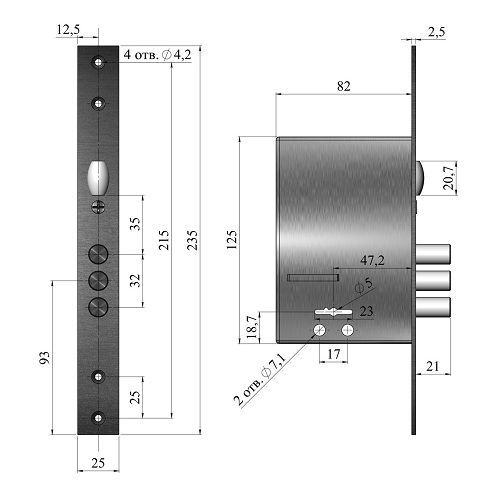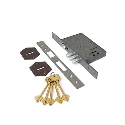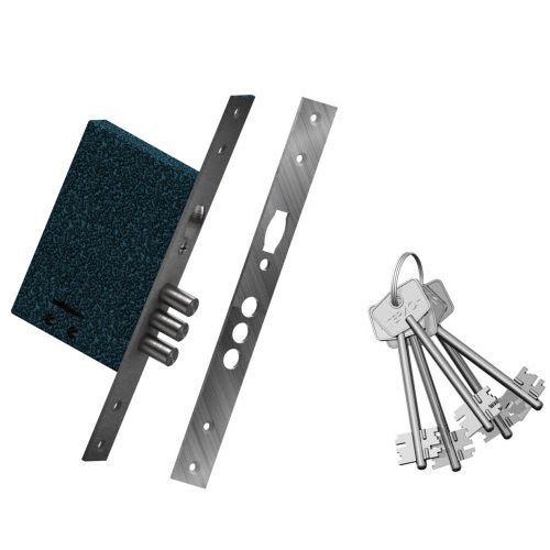 Замок врезной с трехпалым ригелем, роликовой защелкой и шести-сувальдным блокирующим механизмом сейфового типа. Замок сертифицирован 2 классом по ГОСТ 5089-2011, сохраняет работоспособность после попадания в скважину посторонних предметов. Запирание поворотом ключа обеспечивает ригель, состоящий из трех пальцев диаметром 12 мм с вылетом 21 мм. Роликовая защелка обеспечивает фиксацию двери. В модификации Классик М-01 - сертифицирован 3 классом по ГОСТ 5089-2011. Количество секретов: более 100 000 вариантов.
