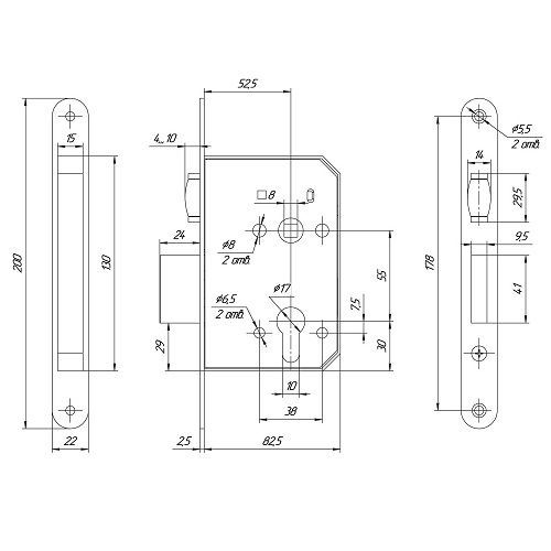 Замок врезной цилиндровый (корпус), сертифицированный на соответствие 2-му классу безопасности по ГОСТ. Дверные замки типа ЗВ5 501.0.0 подходят для установки во входные двери.