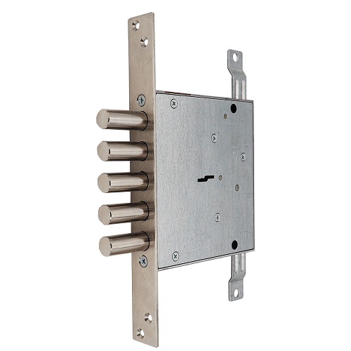 Замок врезной сувальдный ЗВ8 140.1.0 с 5-ью сувальдами соответствует 3-му классу безопасности. Замок имеет пять стальных ригелей диаметром 16 мм, которые выдвигаются из корпуса замка на 40 мм. В одном из ригелей находится закаленный стальной стержень, обеспечивающий защиту от перепиливания. В комплекте 5 длинных ключей.
