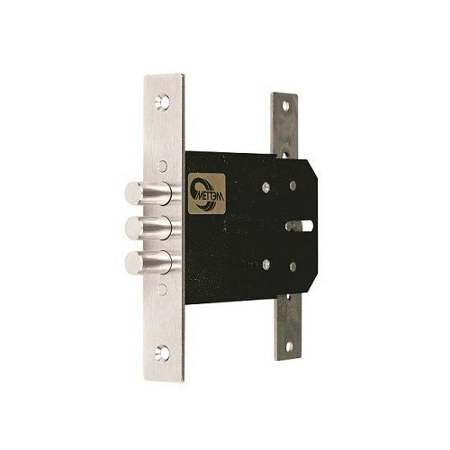 Замок имеет три направления запирания - тремя стальными ригелями диаметром 12 мм, которые выдвигаются из корпуса замка на 22 мм, а также двумя вертикальными тягами в направлении вверх-вниз. Замок запирает дверь на два полных полуоборота.