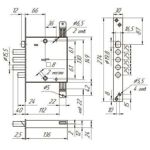 | Размер ригеля | 15,5 мм |