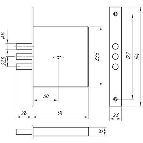 | Удаление ключевого отверстия (Backset) | 60 мм |