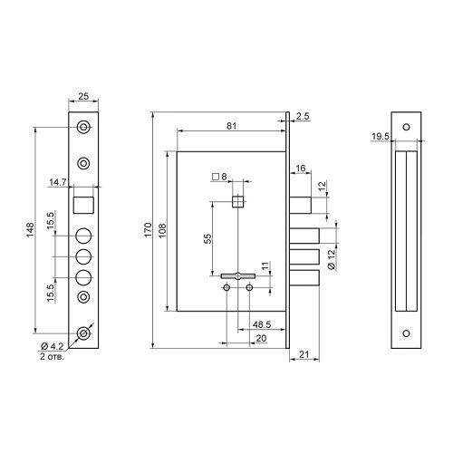 Замок врезной Sam (Сам) сувальдный с защёлкой ЗВ9-8/13, 3 кл. /74100/