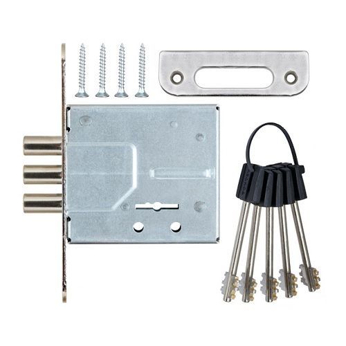 з ключа и три штыря, как дополнительный верхний замок прямо отлично подойдет! да можно и как основной на простую дверь. КОроче - простой и надежный за малые деньги! советую