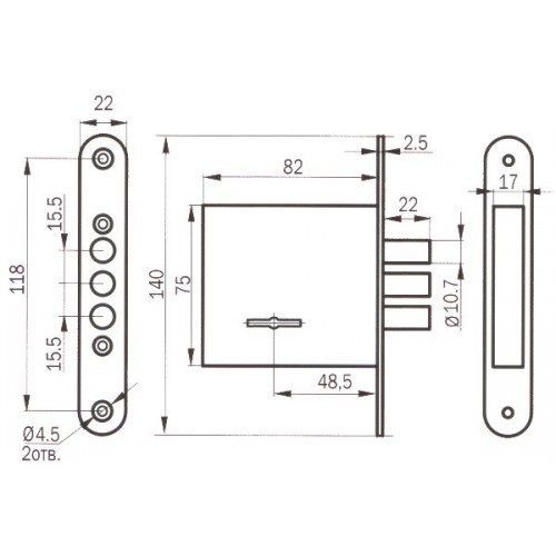 Замок врезной ПРОСАМ 79900 ЗВ8-8У/13 (3риг) б/планки /25719/