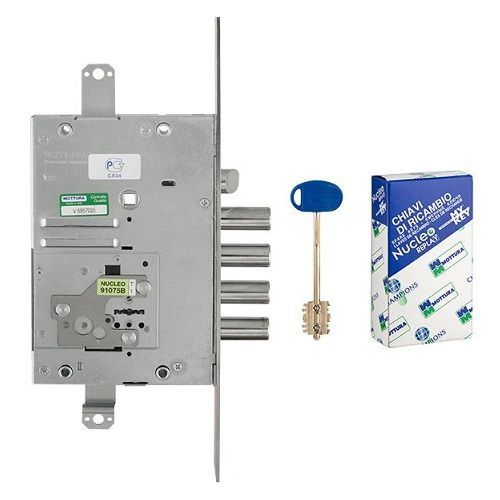 Замок врезной сувальдный 52.J535M My Key D с тремя точками запирания с защелкой предназначен для правосторонних металлических дверей. Это более усовершенствованная модель: нуклео больше не выступает над поверхностью и не требует под себя «окно» в двери. Замок оснащен взаимозаменяемой нуклео, кодирование нуклео осуществляется при помощи специального ключа. Наличие на ключе системы My Key подвижных вращающихся элементов предотвращает незаконное изготовление дубликатов ключей. Копии таких ключей можно изготовить только в авторизованных центрах Mottura Club при предъявлении оригинального ключа и карточки владельца. Реверсивная защелка диаметром 20 мм приводится в действие ключи и фалевой ручкой. Бэксет 66 мм. Круглые ригели диаметром 18 мм с ходом 36 мм. Ход тяг 20 мм. В комплект замка входят: 1 нуклео с 5 сувальдными ключами 40 мм в герметичной упаковке, 1 внутренняя накладка, 1 наружная накладка.