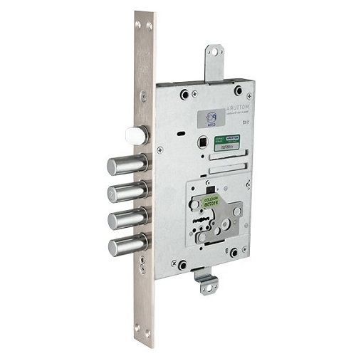 Замок врезной сувальдный 52.J535M My Key S с тремя точками запирания с защелкой предназначен для левосторонних металлических дверей. Это более усовершенствованная модель: нуклео больше не выступает над поверхностью и не требует под себя «окно» в двери. Замок оснащен взаимозаменяемой нуклео, кодирование нуклео осуществляется при помощи специального ключа. Наличие на ключе системы My Key подвижных вращающихся элементов предотвращает незаконное изготовление дубликатов ключей. Копии таких ключей можно изготовить только в авторизованных центрах Mottura Club при предъявлении оригинального ключа и карточки владельца. Реверсивная защелка диаметром 20 мм приводится в действие ключи и фалевой ручкой. Бэксет 66 мм. Круглые ригели диаметром 18 мм с ходом 36 мм. Ход тяг 20 мм. В комплект замка входят: 1 нуклео с 5 сувальдными ключами 60 мм в герметичной упаковке, 1 внутренняя накладка, 1 наружная накладка.