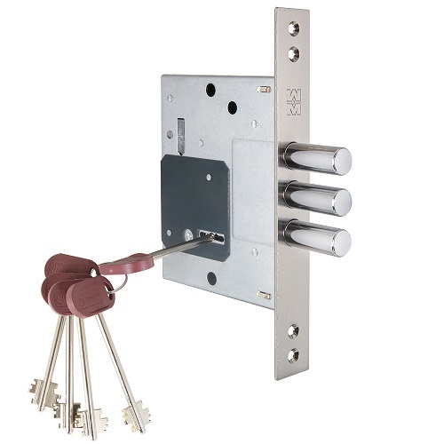 Замок врезной сувальдный DP25.170 без защелки. Аналог замков Kale 257L. Защитная пластина на ключевом отверстии. Защита от вскрытия методом свертыш.