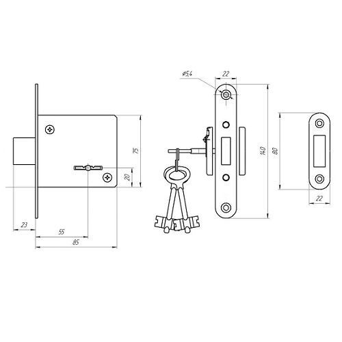 Дверной замок сувальдного типа, модель ЗВ8-4 предназначен для установки в деревянные и стальные двери толщиной до 50 мм. Ригель стальной прямоугольного сечения. В комплекте 3 ключа, ответная планка и две накладки на оверстие дря ключа.